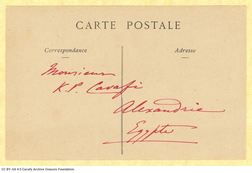 Καρτ ποστάλ του Θεόδωρου Ράλλη προς τον Κ . Π. Καβάφη