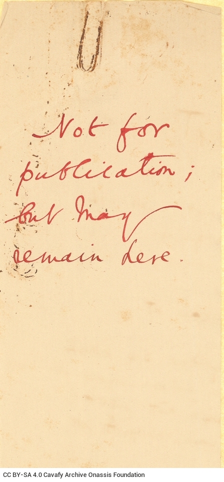 Το ποίημα συνοδεύεται από απόκομμα χαρτιού με τη χειρόγραφη σημείωση: Not for publication; but may remain here (όχι για δημοσίευση· αλλά μπορεί να μένει εδώ).