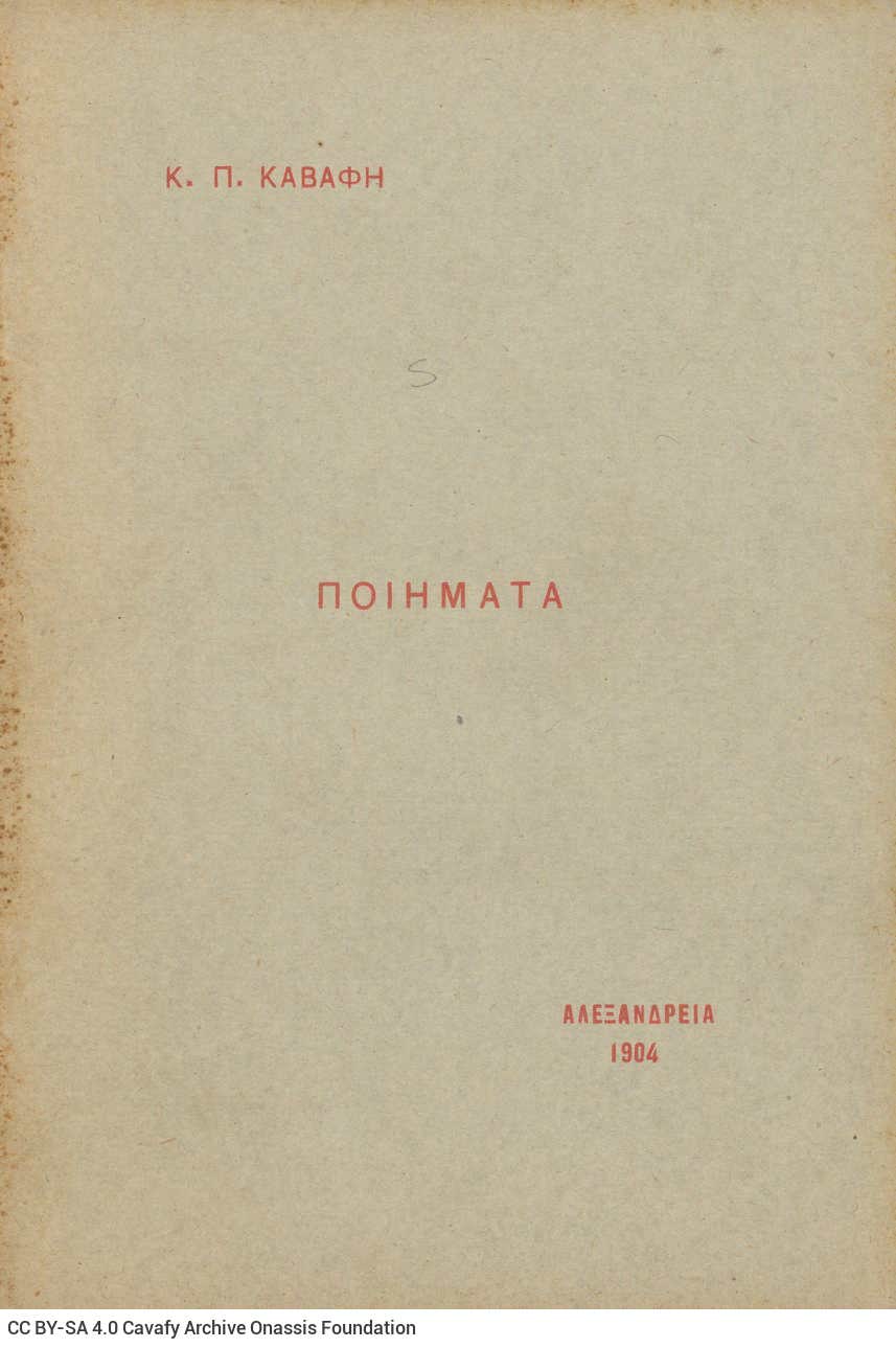 Το πρώτο από τα δύο καβαφικά τεύχη τυπώθηκε πιθανότατα ανάμεσα στον Δεκέμβριο του 1904 και τον Φεβρουάριο του 1905,3και αντίτυπό του μπορούμε να βρούμε στο τεκμήριο GR-OF CA CA-SF01-S01-F02-SF002-0001 (2061), https://cavafy.onassis.org/el/object/u-482/.