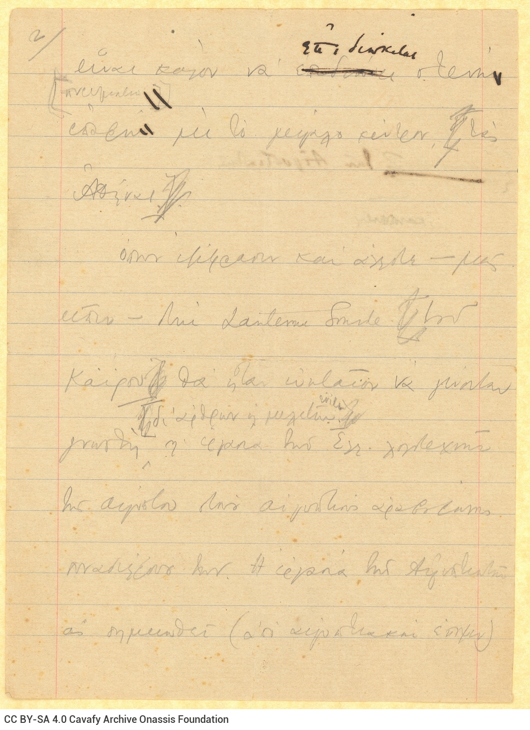 3 Το εν λόγω κείμενο δεν σώζεται στο αρχείο, παρά τις αναφορές σε αυτό που συναντάμε σε άλλα τεκμήρια. Στη Βιβλιογραφία Δασκαλόπουλου φέρει αριθμό λήμματος A317, ενώ έχει δημοσιευτεί και στη συγκεντρωτική έκδοση των πεζών κειμένων του Καβάφη. Βλ. «Απόσπασμα για τον Άχμεντ Ράσσιμ», στο: Κ. Π. Καβάφης, Τα πεζά (1882;-1931), φιλολογική επιμέλεια Μιχάλης Πιερής, Ίκαρος, Αθήνα 22010, σ. 150-151. Πρβλ. Δ. Δασκαλόπουλος, Βιβλιογραφία Κ. Π. Καβάφη (1886-2000), Κέντρο Ελληνικής Γλώσσας, Θεσσαλονίκη 2003, σ. 81, 1133.