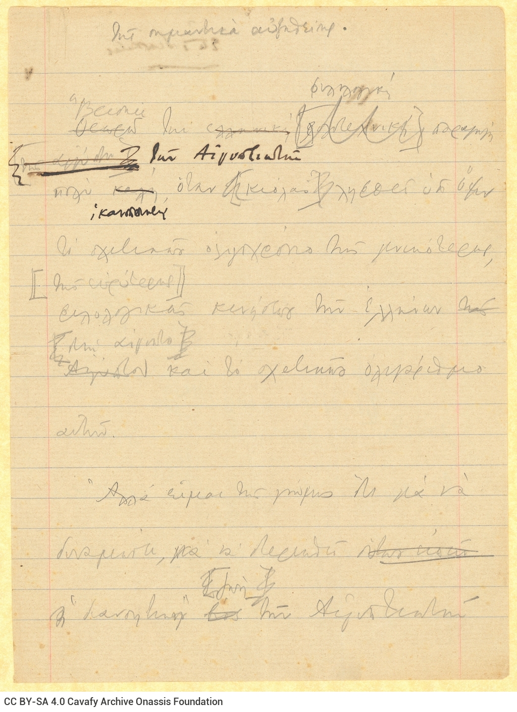 Απόσπασμα από τις σημειώσεις του Καβάφη σχετικά με τη φιλολογική παραγωγή των Αιγυπτιωτών Ελλήνων