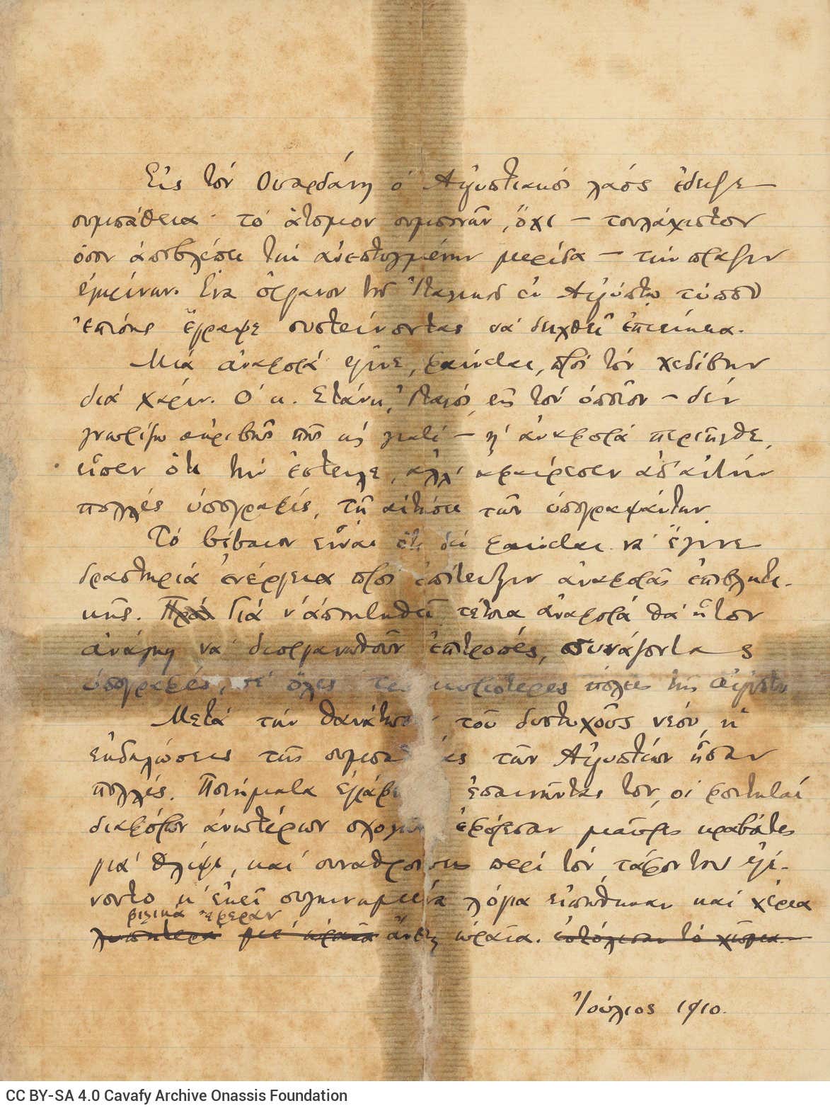 Χειρόγραφο του ποιήματος σώζεται στο αρχείο Καβάφη, στο αχρονολόγητο τεκμήριο GR-OF CA CA-SF01-S01-F01-SF001-0121 (129), https://cavafy.onassis.org/el/object/27-1906-2-u-u/.