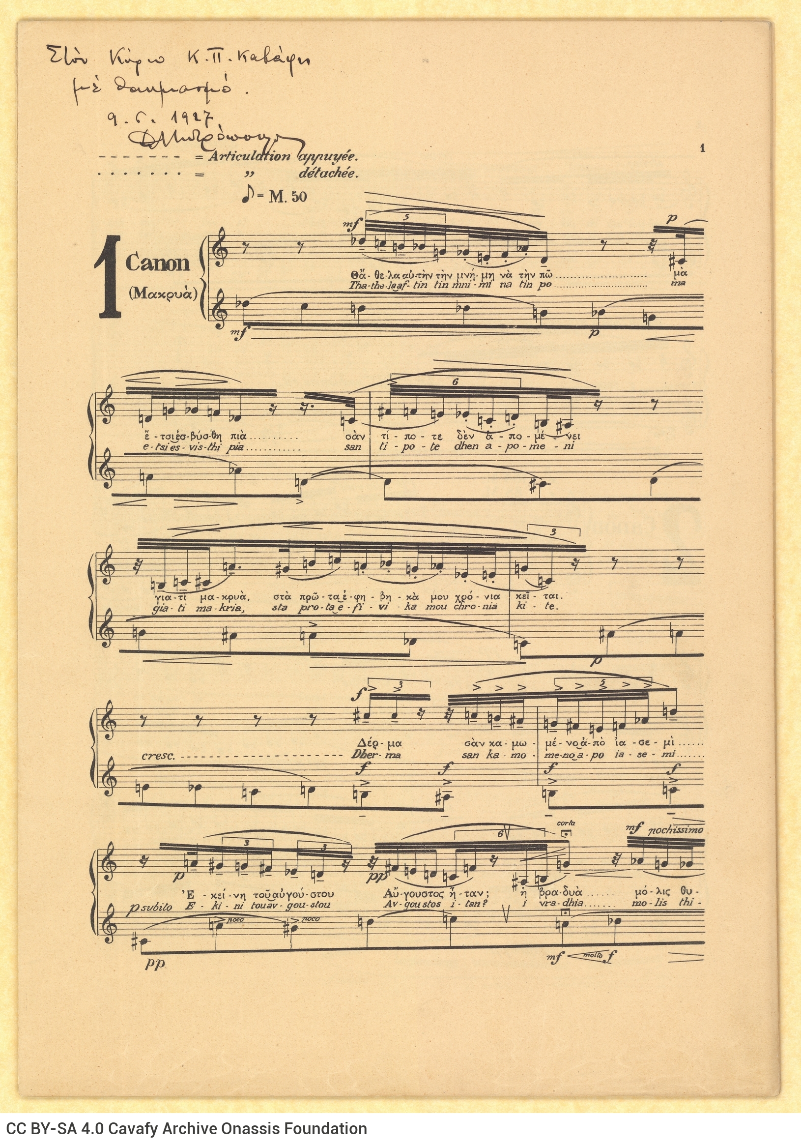 5 Οι συγκεκριμένες επιστολές ανήκουν στη Συλλογή της Μουσικής Βιβλιοθήκης «Λίλιαν Βουδούρη» του Συλλόγου Οι Φίλοι της Μουσικής. Το ψηφιακό τεκμήριο δημοσιεύεται στην ψηφιακή συλλογή του Αρχείου Καβάφη με ευγενική παραχώρηση της Μουσικής Βιβλιοθήκης «Λίλιαν Βουδούρη» του Συλλόγου Οι Φίλοι της Μουσικής.