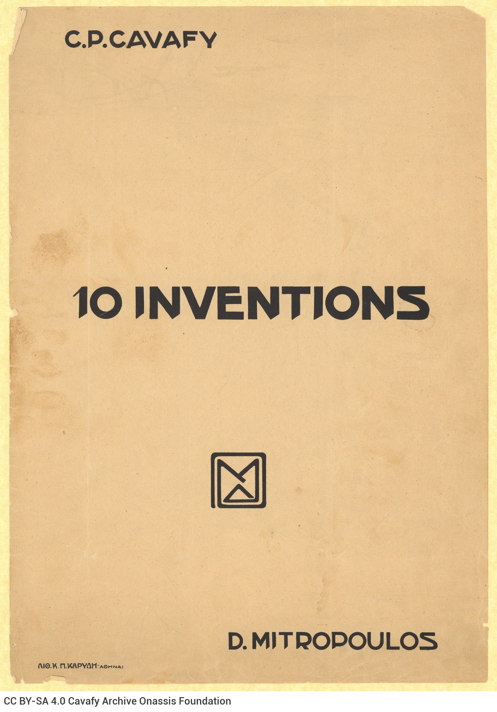 Εκτός από αντίτυπο της ίδιας της μουσικής έκδοσης, στην Ψηφιακή Συλλογή του Αρχείου Καβάφη φιλοξενούνται επίσης σημαντικά τεκμήρια και από την ιστορία της μελοποίησης του Δ. Μητρόπουλου. Ας δούμε το τεκμήριο GR-OF CA CA-SF02-S01-SS01-F18-SF003-0100 (756), https://cavafy.onassis.org/el/object/9dpr-mp3k-pn7x/.5 Πρόκειται για δύο χειρόγραφες επιστολές του Δημήτρη Μητρόπουλου προς τον Καβάφη, σταλμένες από την Αθήνα. Στην πρώτη (15/07/1926), ο Μητρόπουλος πληροφορεί τον Καβάφη για τη μελοποίηση ποιημάτων του και ζητά μεταφράσεις τους στα γαλλικά. Στη δεύτερη επιστολή (16/08/1926), τον ευχαριστεί για την αποστολή των γαλλικών μεταφράσεων. Στην 4η Λήψη του τεκμηρίου, στην τελευταία δηλαδή σελίδα της πρώτης από τις δύο επιστολές, παρατηρούμε τη διεύθυνση αποστολής της επιστολής: «Οικία Νεγρεπόντη, Οδός Όθωνος 12». Πρόκειται για το σπίτι της Ελένης Νεγρεπόντη-Ουράνη, κριτικού, γνωστής με το ψευδώνυμο Άλκης Θρύλος, και συζύγου του ποιητή Κώστα Ουράνη, στην οποία αναφερθήκαμε εκτενέστερα παραπάνω.