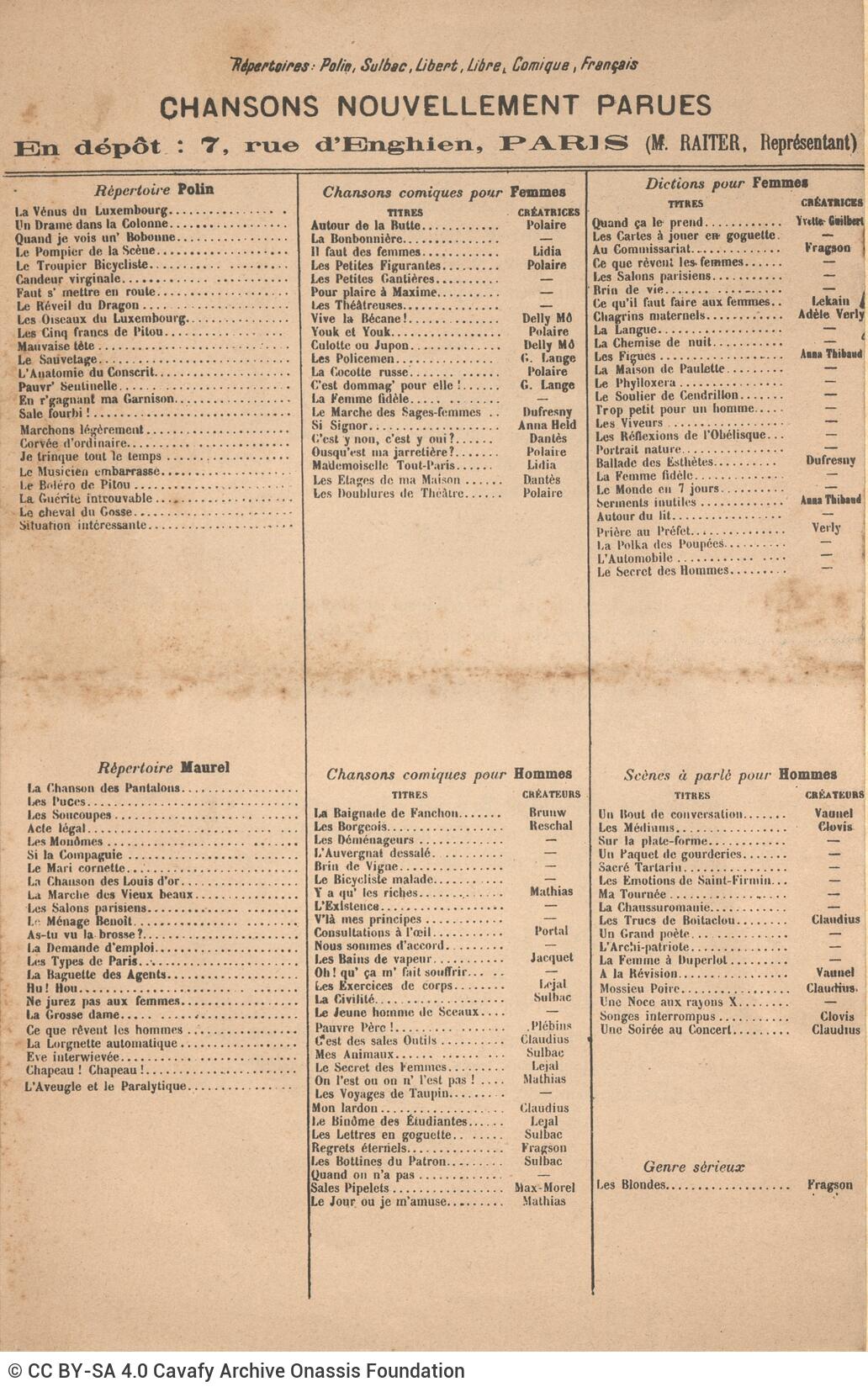 Édition Répertoire. “Pamphlet “L’Aveugle et le paralytique””. Pamphlet (advertising), n.d.. GR-OF CA CA-SF02-S02-F25-SF009-0054 (2175), Onassis Foundation C. P. Cavafy Fonds. From The Digital Collection of the Cavafy Archive, edited by Onassis Foundation, Athens, last modified 01.10.2025. https://doi.org/10.26256/CA-SF02-S02-F25-SF009-0054.