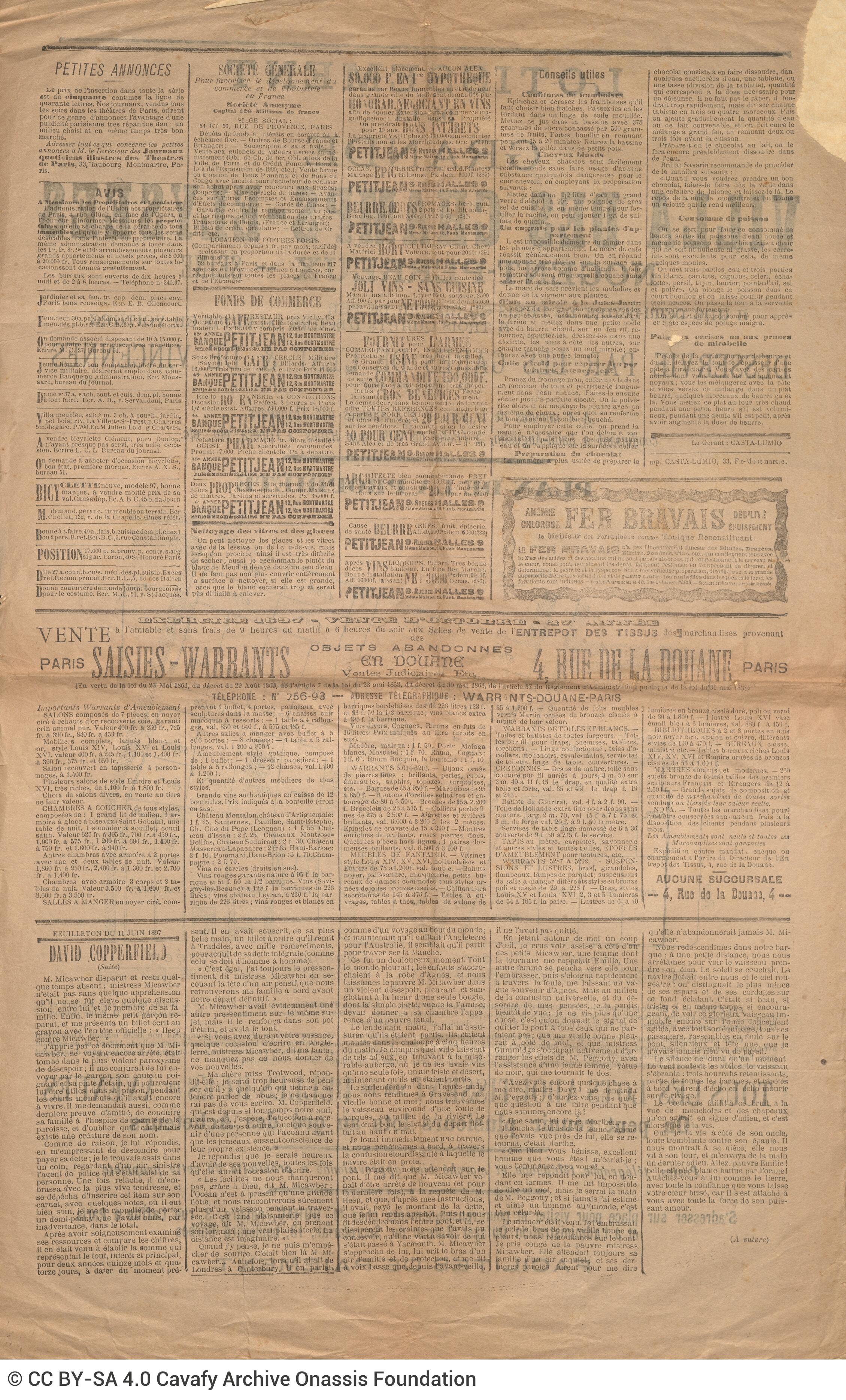 L’Opéra: Journal quotidien, indépendant (newspaper). “News. L’Opéra: Journal quotidien, indépendant”. Publication (newspaper issue), 12.06.1897. GR-OF CA CA-SF02-S02-F25-SF009-0038 (2159), Onassis Foundation C. P. Cavafy Fonds. From The Digital Collection of the Cavafy Archive, edited by Onassis Foundation, Athens, last modified 01.10.2025. https://doi.org/10.26256/CA-SF02-S02-F25-SF009-0038.