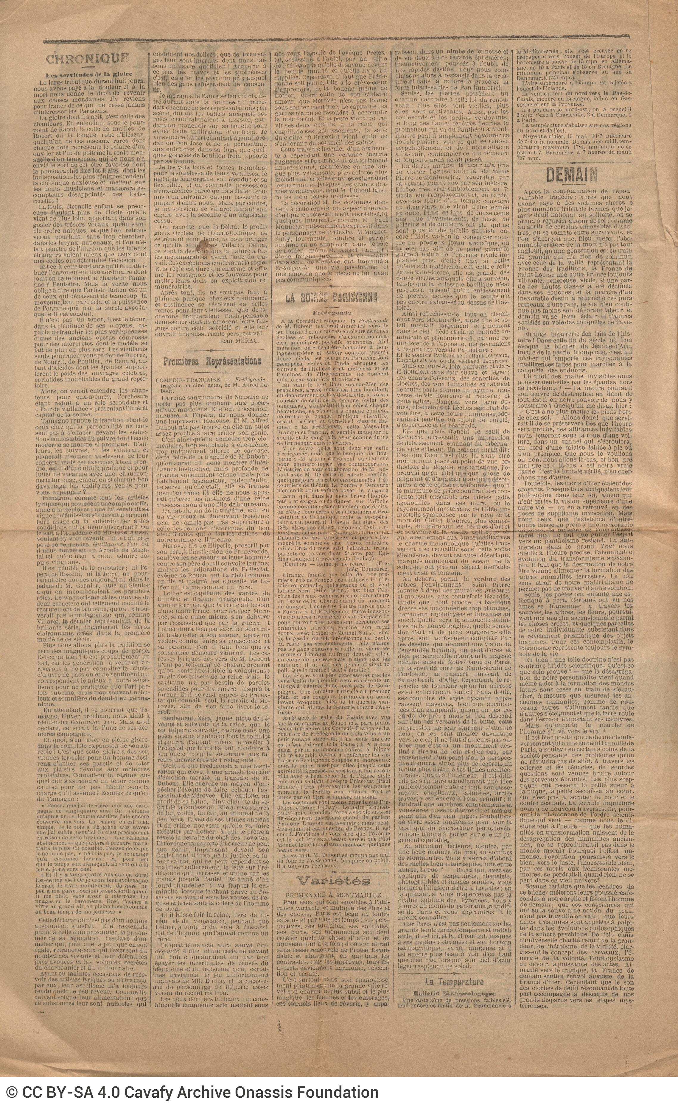 La Comédie française: Journal quotidien, indépendant (newspaper). “News. La Comédie française: Journal quotidien, indépendant”. Publication (newspaper issue), 16.05.1897. GR-OF CA CA-SF02-S02-F25-SF009-0019 (2140), Onassis Foundation C. P. Cavafy Fonds. From The Digital Collection of the Cavafy Archive, edited by Onassis Foundation, Athens, last modified 01.10.2025. https://doi.org/10.26256/CA-SF02-S02-F25-SF009-0019.