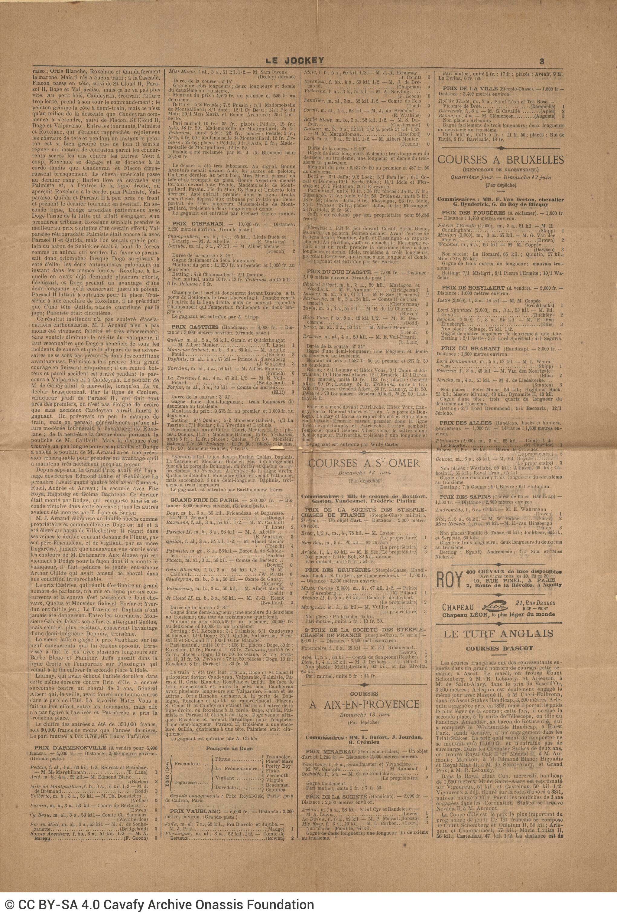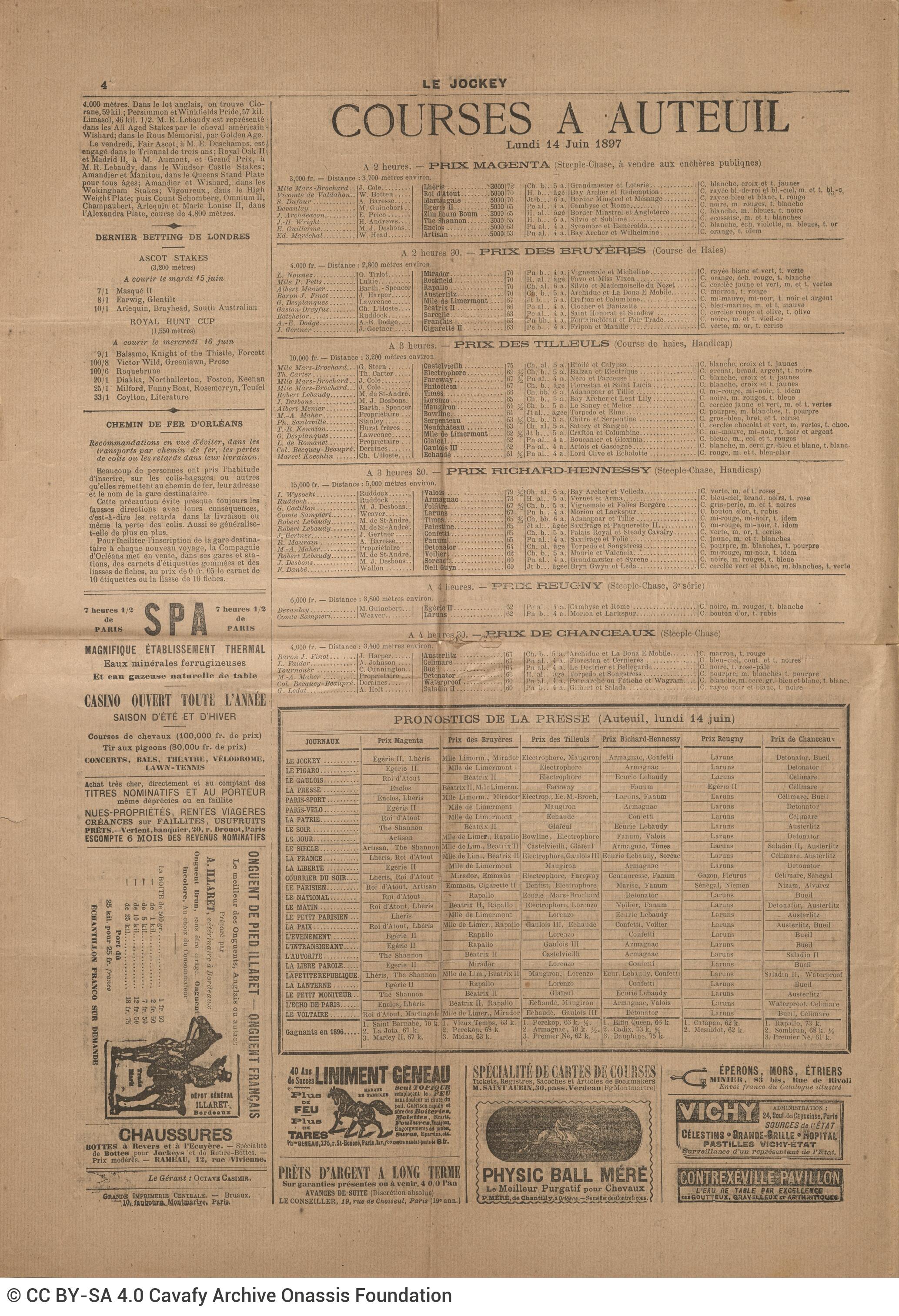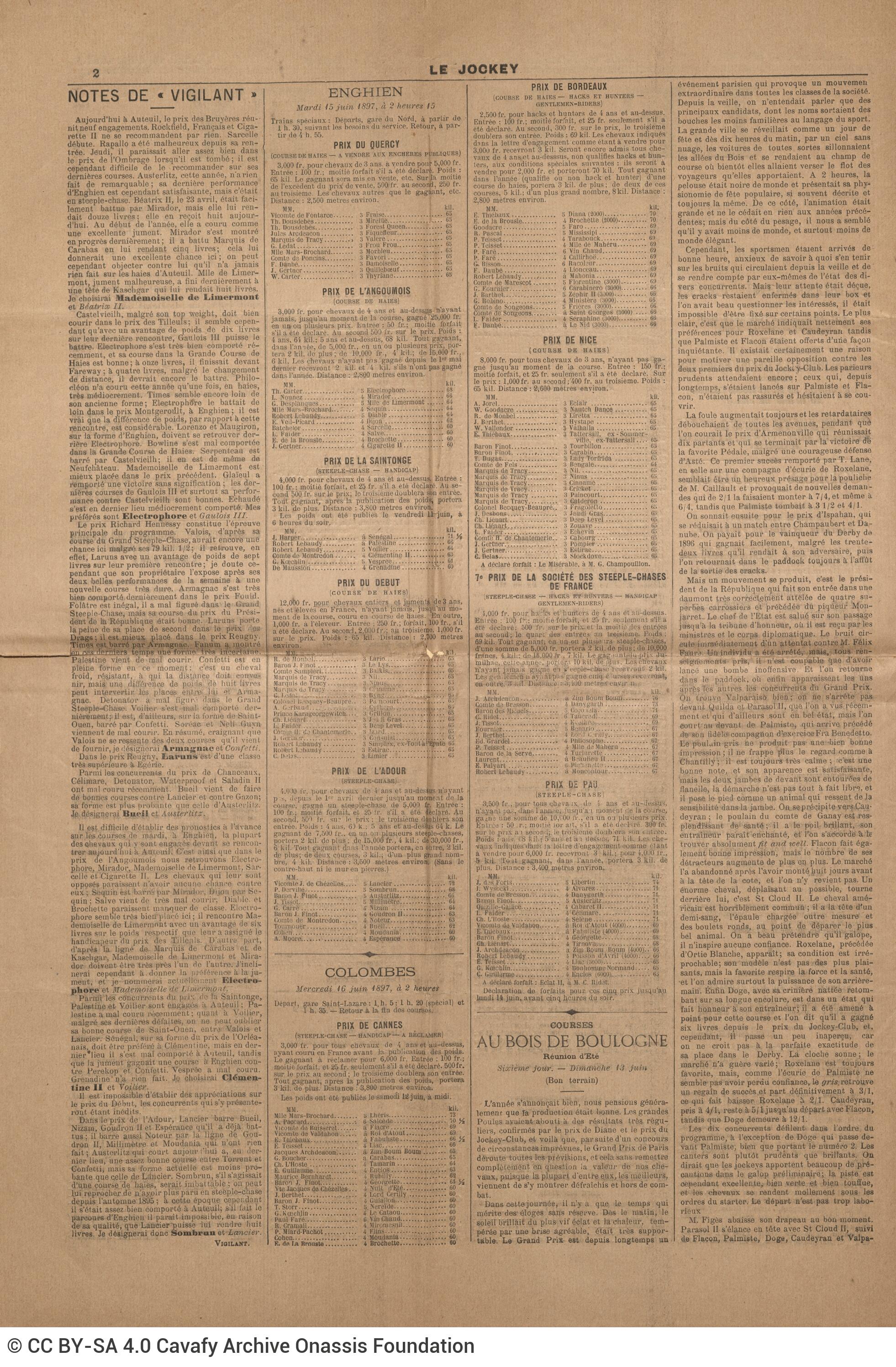 Le Jockey (newspaper). “News. Le Jockey”. Publication (newspaper issue), 14.06.1897. GR-OF CA CA-SF02-S02-F25-SF009-0042 (2163), Onassis Foundation C. P. Cavafy Fonds. From The Digital Collection of the Cavafy Archive, edited by Onassis Foundation, Athens, last modified 01.10.2025. https://doi.org/10.26256/CA-SF02-S02-F25-SF009-0042.