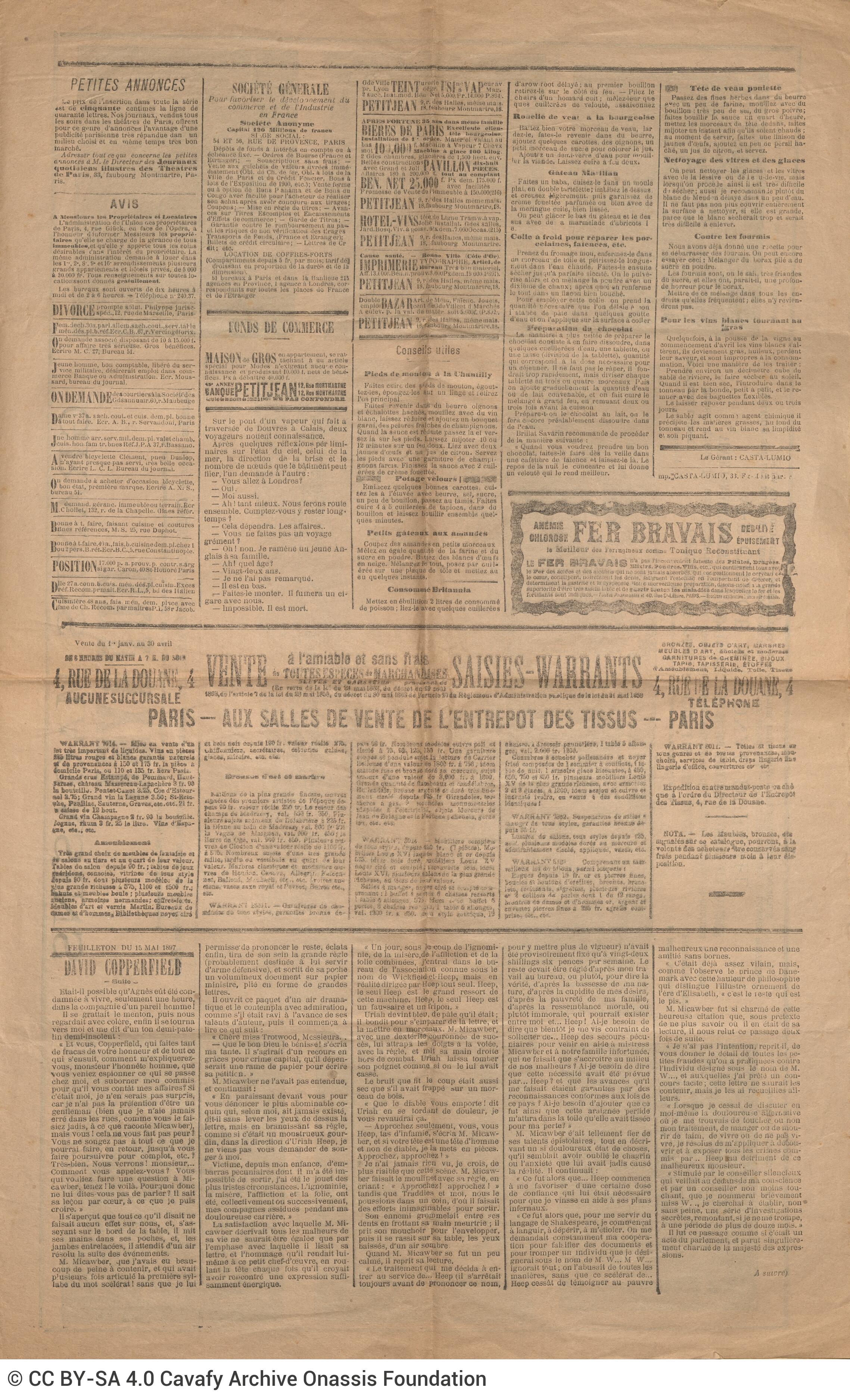 Le Vaudeville: Journal quotidien, indépendant (newspaper). “News. Le Vaudeville: Journal quotidien, indépendant”. Publication (newspaper issue), 15.05.1897. GR-OF CA CA-SF02-S02-F25-SF009-0017 (2138), Onassis Foundation C. P. Cavafy Fonds. From The Digital Collection of the Cavafy Archive, edited by Onassis Foundation, Athens, last modified 01.10.2025. https://doi.org/10.26256/CA-SF02-S02-F25-SF009-0017.