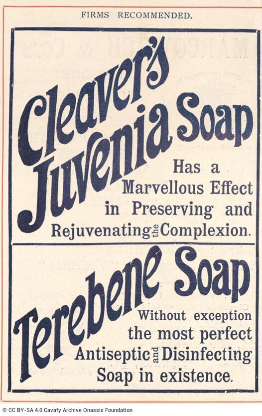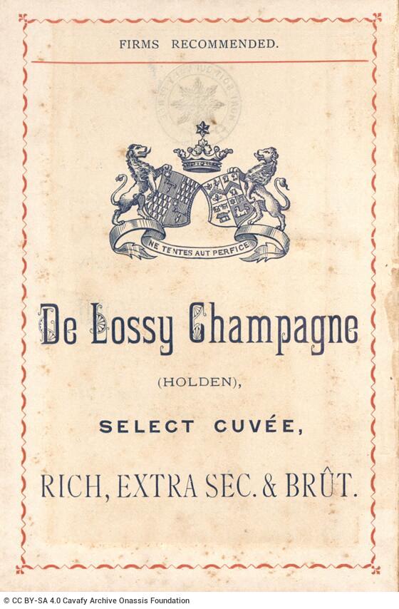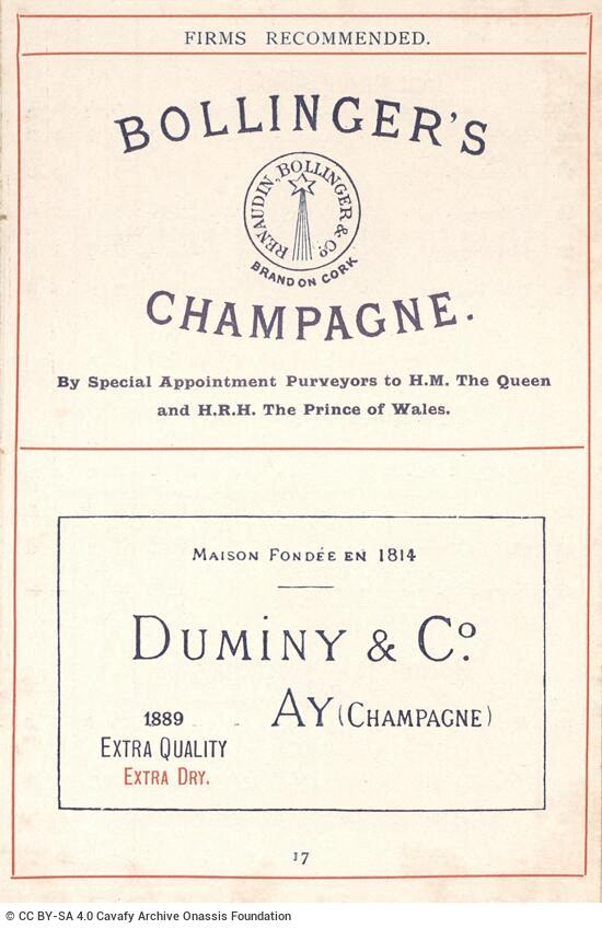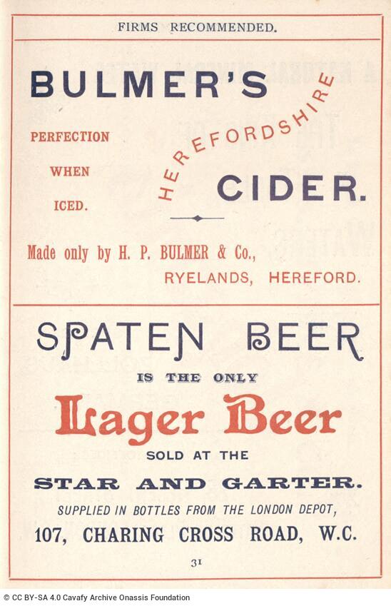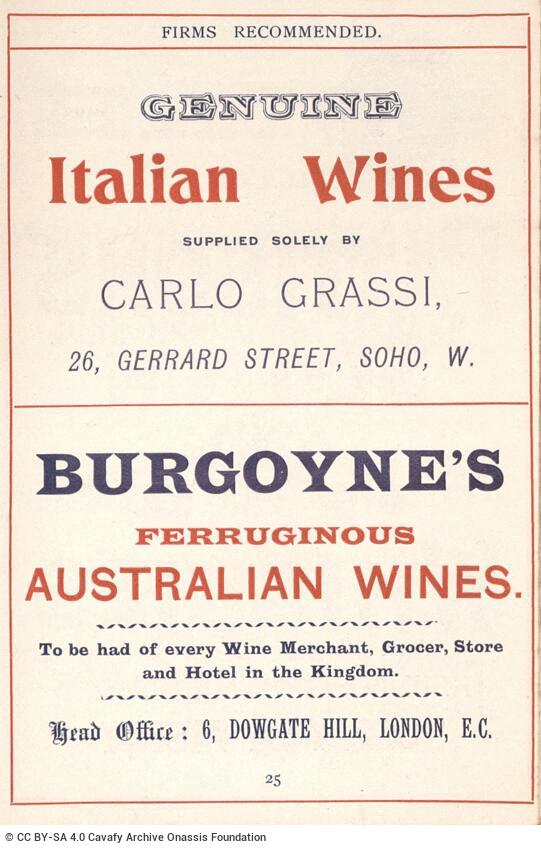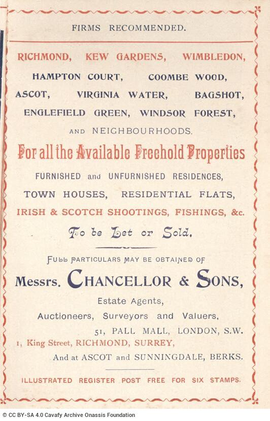 Star & Carter Hotel & Restaurant. “Star & Carter Hotel & Restaurant, Richmond”. List, 01.05.1896. GR-OF CA CA-SF02-S02-F25-SF009-0001 (2122), Onassis Foundation C. P. Cavafy Fonds. From The Digital Collection of the Cavafy Archive, edited by Onassis Foundation, Athens, last modified 01.10.2025. https://doi.org/10.26256/CA-SF02-S02-F25-SF009-0001.