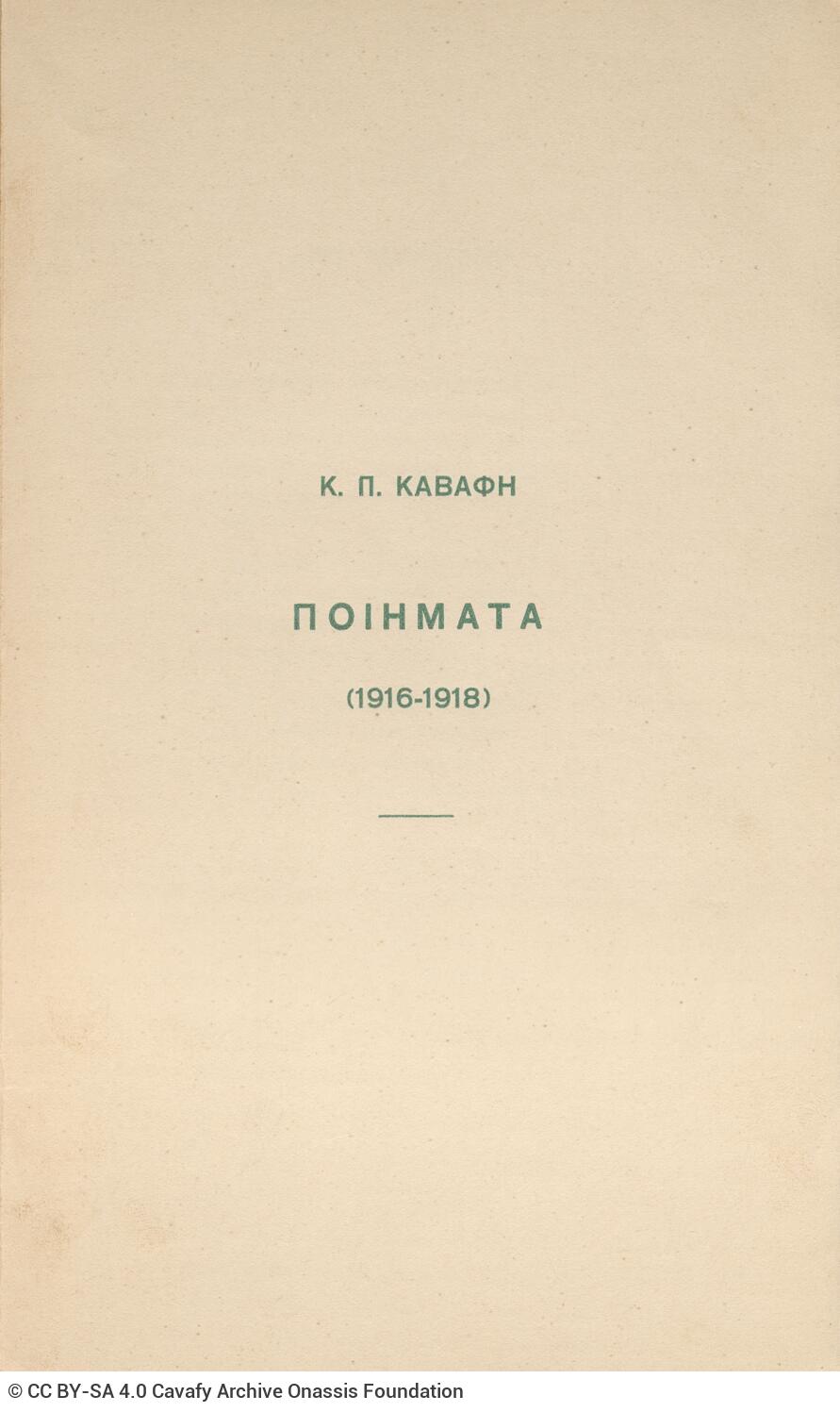 Cavafy, C. P.. ““C. P. Cavafy Poems (1916-1918)””. Poems (collection), 1927-1931. GR-OF CA CA-SF03-F40-0003 (2223), Onassis Foundation C. P. Cavafy Fonds (Post-2012 Acquisitions). From The Digital Collection of the Cavafy Archive, edited by Onassis Foundation, Athens, last modified 01.10.2025. https://doi.org/10.26256/CA-SF03-F40-0003.