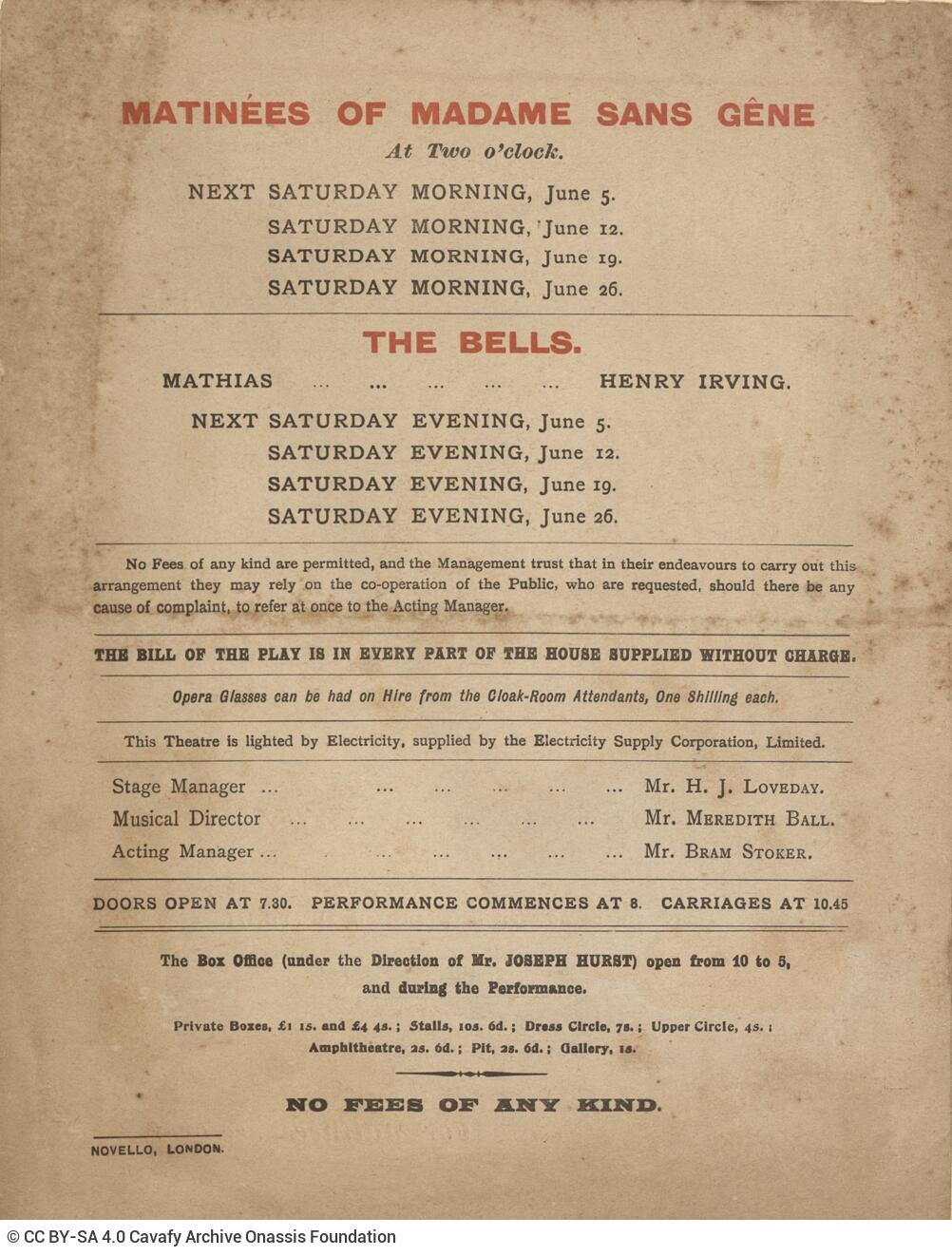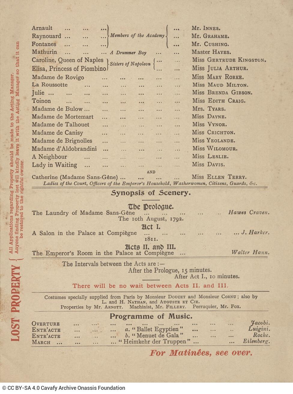 Royal Lyceum Theatre (London). “Theatre programme of the Royal Lyceum Theatre”. Theatre programme, 31.05.1897. GR-OF CA CA-SF02-S02-F25-SF009-0031 (2152), Onassis Foundation C. P. Cavafy Fonds. From The Digital Collection of the Cavafy Archive, edited by Onassis Foundation, Athens, last modified 01.10.2025. https://doi.org/10.26256/CA-SF02-S02-F25-SF009-0031.
